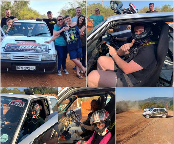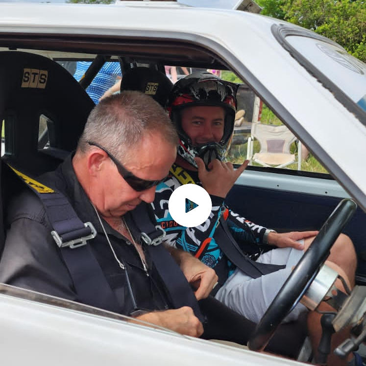 Thirteen excited participants signed up for the opportunity to experience as a passenger the in-car excitement of a rally car at full tilt on a gravel rally stage.